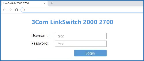 - The default username for your 3Com LinkSwitch 2000 2700 is tech.