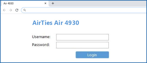 To get access to your AirTies Air 4930, you need the IP of your device, the username and password. You'll find such information in the Manual of your AirTies Air 4930 router. But if you do not have the manual for your router or you do not want to read the whole manual to find the default login information then you can use the quick guide below. To get to the router login page it's necessary that you are connected to the router.