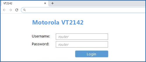 To get access to your Motorola VT2142, you need the IP of your device, the username and password. You'll find such information in the Manual of your Motorola VT2142 router. But if you do not have the manual for your router or you do not want to read the whole manual to find the default login information then you can use the quick guide below. To get to the router login page it's necessary that you are connected to the router.