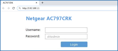 To get access to your Netgear AC797CRK, you need the IP of your device, the username and password. You'll find such information in the Manual of your Netgear AC797CRK router. But if you do not have the manual for your router or you do not want to read the whole manual to find the default login information then you can use the quick guide below. To get to the router login page it's necessary that you are connected to the router.
