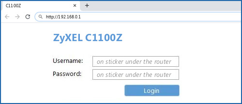 To get access to your ZyXEL C1100Z, you need the IP of your device, the username and password. You'll find such information in the Manual of your ZyXEL C1100Z router. But if you do not have the manual for your router or you do not want to read the whole manual to find the default login information then you can use the quick guide below. To get to the router login page it's necessary that you are connected to the router.